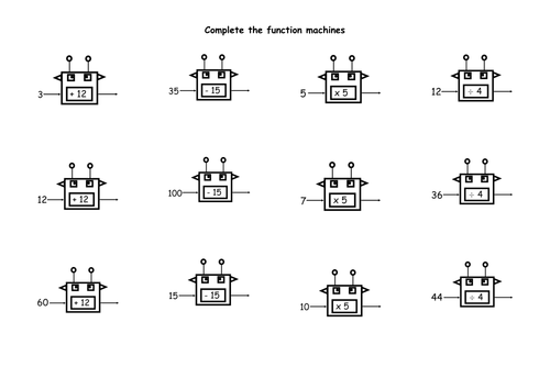 A selection of worksheets aimed at y7 looking at function machines. Use this funky functions machine worksheet to test your student's addition and subtraction skills! Download a function machine worksheet pdf from cazoom maths or find a function machine template and teach the student how to use it. Complete the following function machine so that the input gives the correct output. Find function machine lesson plans and teaching resources.
