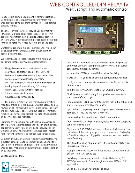 Web Controlled Din Relay 8x Channel Autoping Scripting Https Ssl Adc Wifi Amazon Com Industrial Scientific from images-na.ssl-images-amazon.com Webrelay provides remote relay control and digital input monitoring over any ip network. We can also use url string to control relay on/off. Web relay at a glance. You can connect the board localy or via internet and control it via. It features a remote reboot mode for servers or ip cameras. Additionaly 8 analog inputs are avilable for various sensors. Internet controlled relay is an electrical switch with an implicit web server that can be turned on, off or pulsed using an internet browser, and has a long history of. We believe in helping you find the product that is right for you.